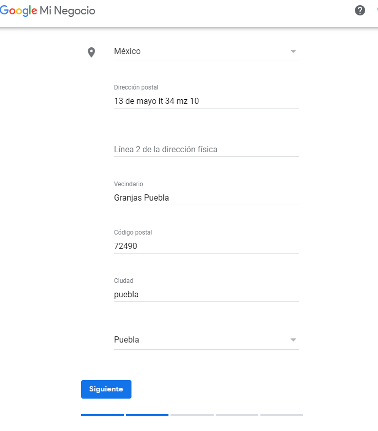 Coloca la dirección de tu empresa y da clic en siguiente.
