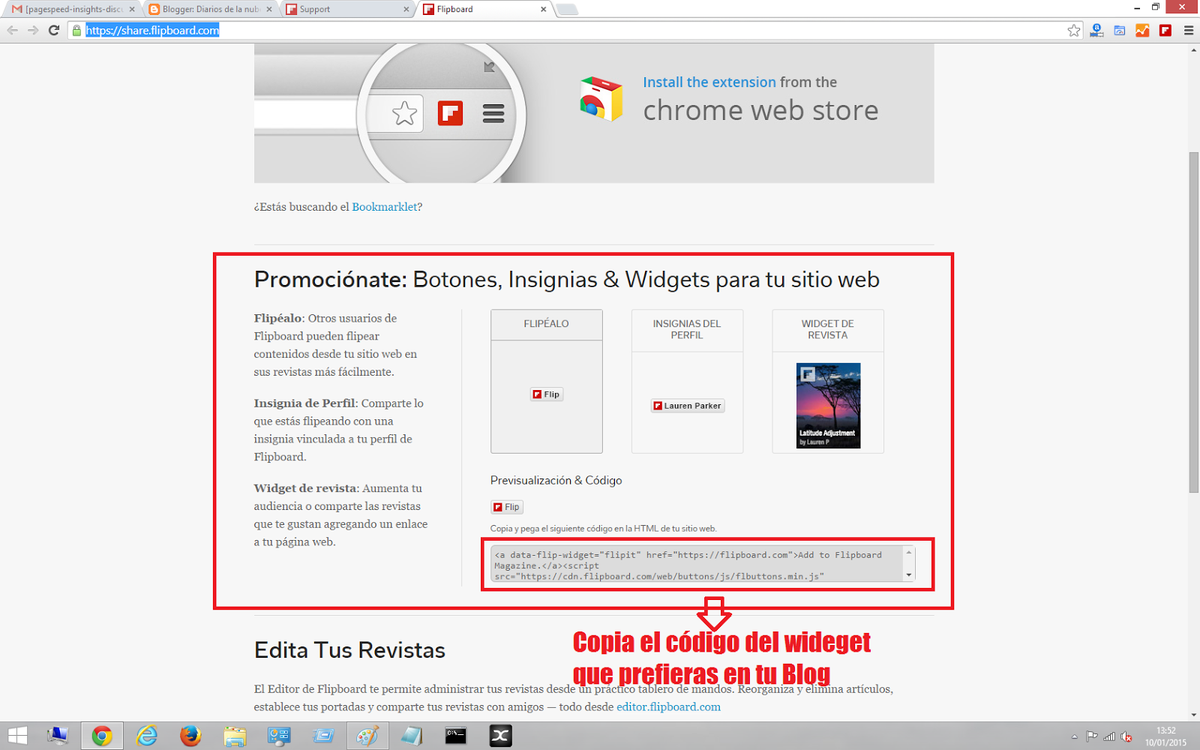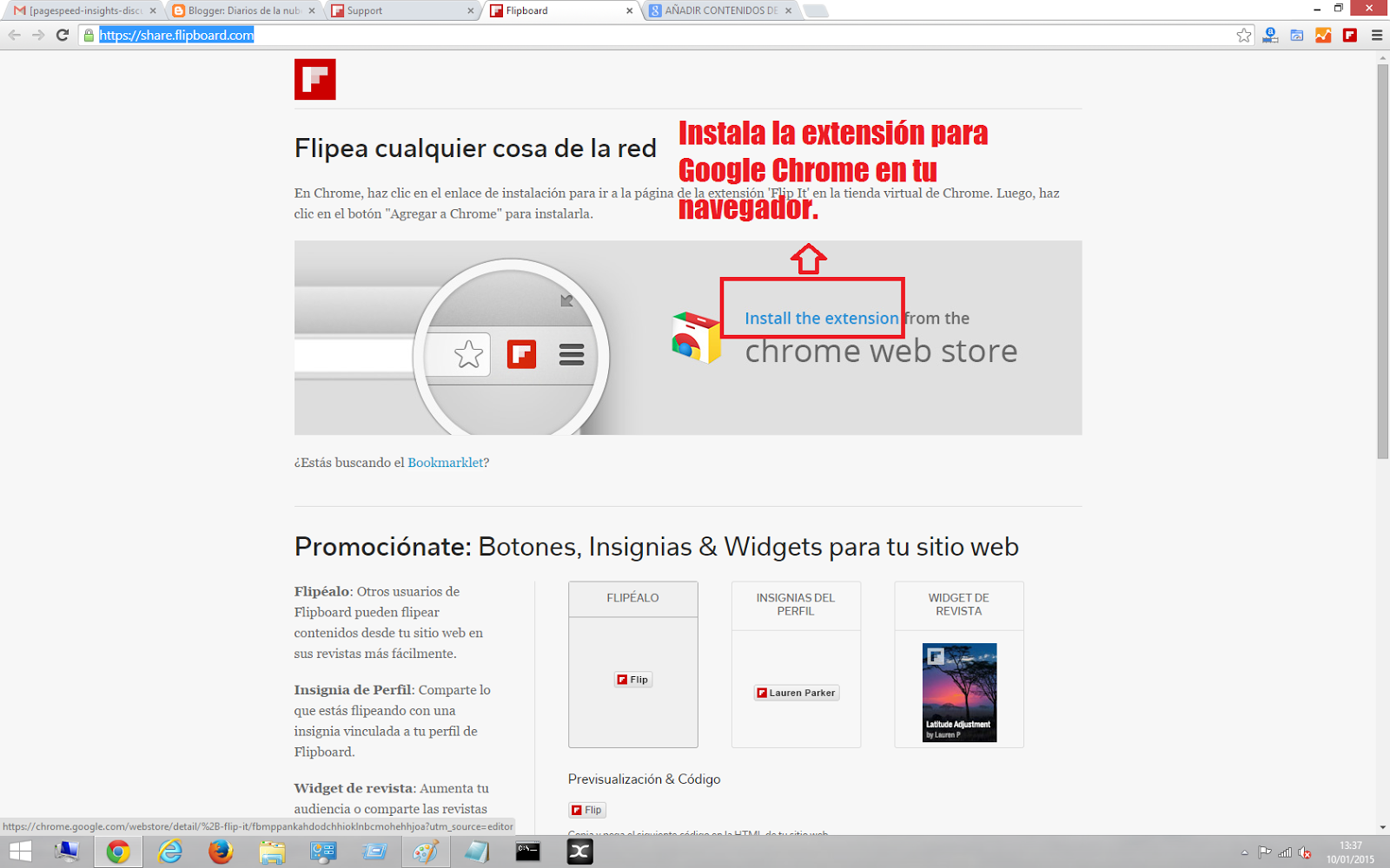 PASO 1) Accede aquí para adquirir el botón para agregar contenidos a Flipboard e instalarlo en tu navegador.