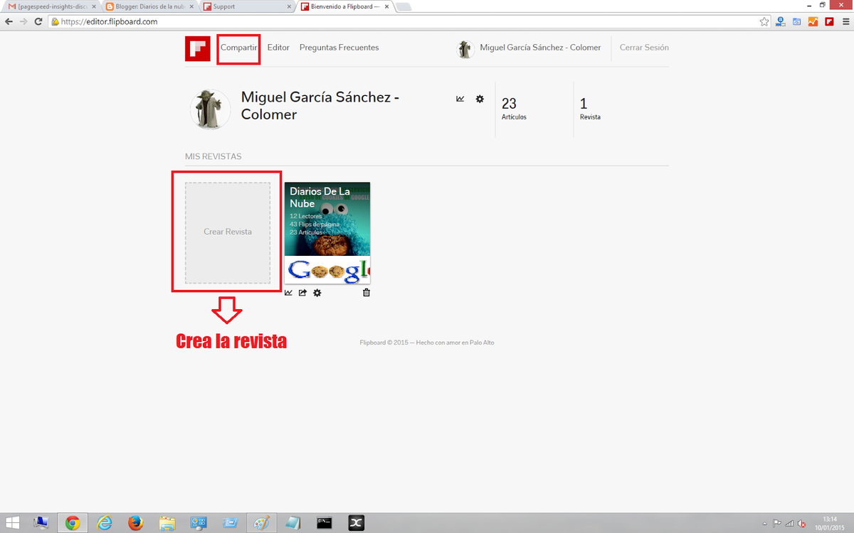 PASO 1) Entra en el editor de revistas de Flipboard y se te mostrará una pantalla como la que te enseño a continuación: