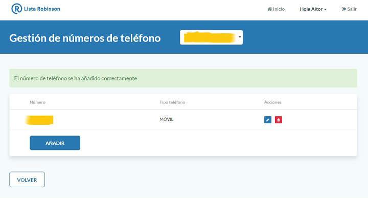 A partir de este punto, solo es cuestión de indicar el número de teléfono en el que no queremos que nos vuelvan a molestar con publicidad y spam. El sistema permite adjuntar más de un número de teléfono.