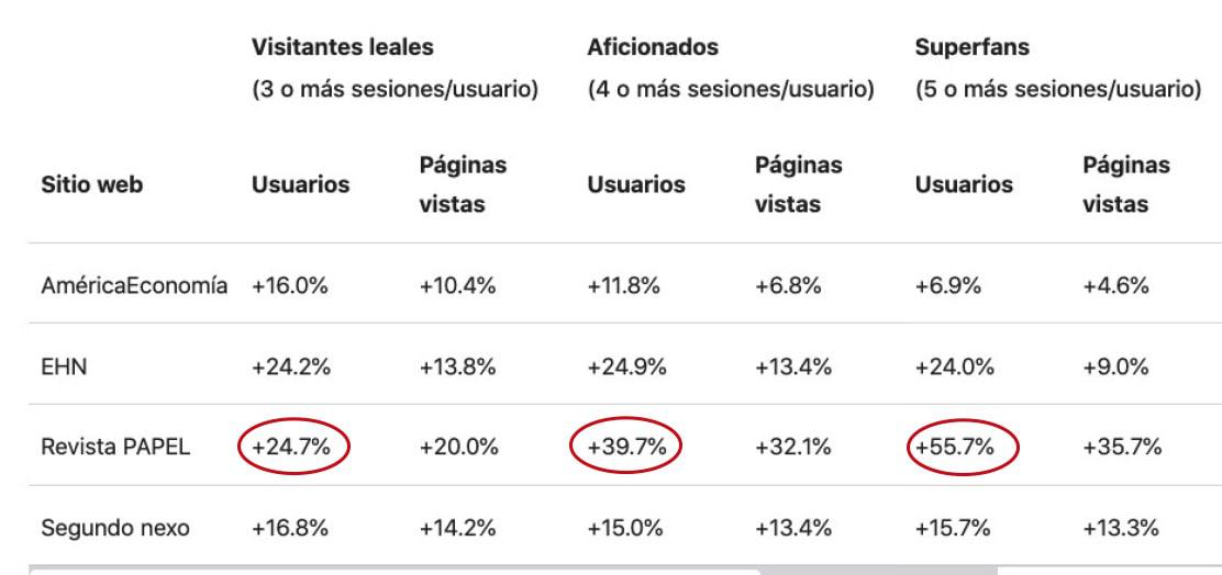 En el caso de los superfans (que entren varias veces), el número de páginas leídas ( el consumo de contenido) subió un 114.2 %.