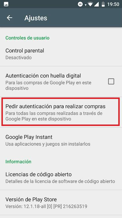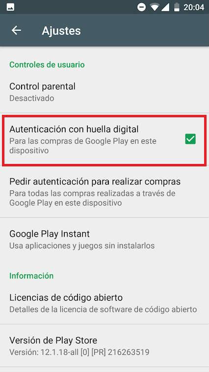 Activar la autenticación por huella digital para realizar compras es el método definitivo, ya que nos asegura que sólo nosotros podemos autorizar cualquier compra que se realice desde nuestro teléfono móvil.