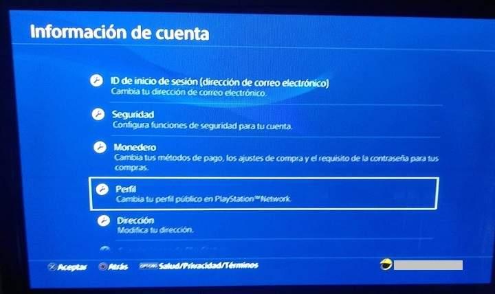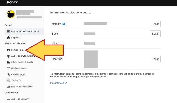 En el menú lateral, seleccionamos “Perfil de PSN”.