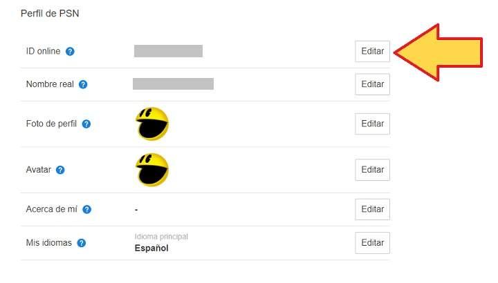 Pulsamos sobre el botón de “editar” situado junto a nuestro ID online.