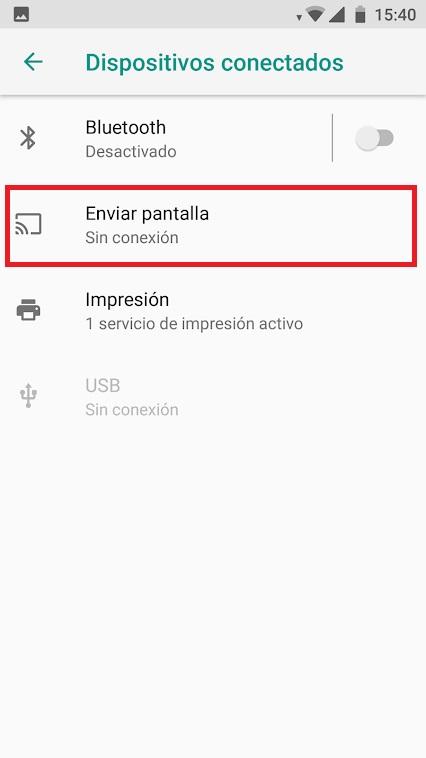 Para conectarnos a un dongle con Miracast desde un dispositivo con Android 6.0 o superior, solo tenemos que ir a “Ajustes -> Dispositivos conectados -> Enviar pantalla”, y seleccionar nuestro dongle. Lo bueno de estos dispositivos es que suelen ser más baratos que un Chromecast o un Fire TV Stick.