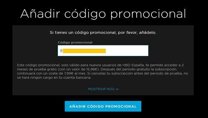 Pinchamos sobre el botón de “Añadir código promocional” y canjeamos el código.