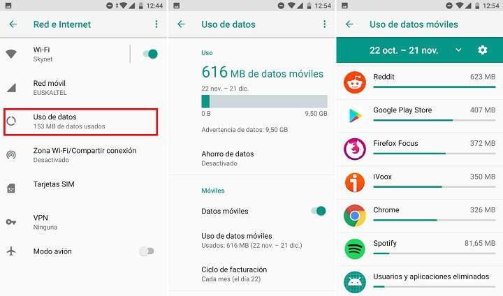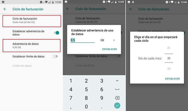 Nota: estos datos se pueden establecer desde “Ajustes -> Red e Internet -> Uso de datos -> Ciclo de facturación”.