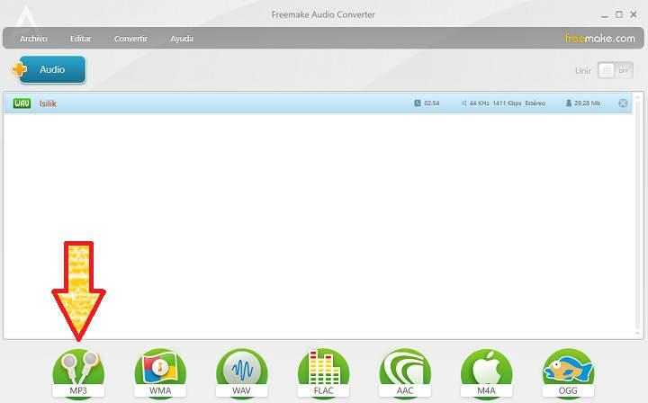 3- Pulsamos sobre el icono “MP3” que aparece en la parte inferior.