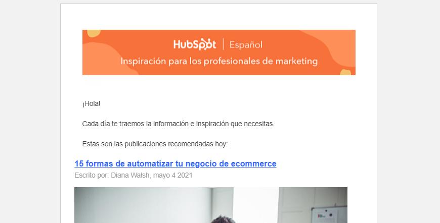el equipo de HubSpot lo logra muy bien. Aquí el ejemplo del boletín informativo: