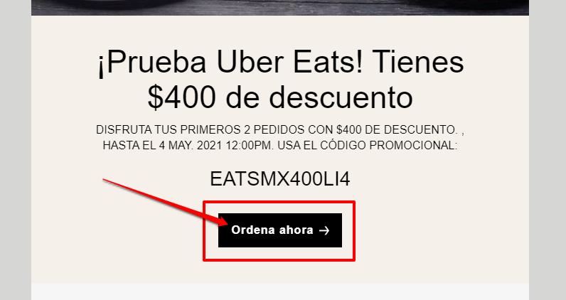 Aquí el ejemplo del boletín Informativo de UberEat: