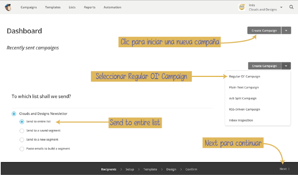 Para siguientes campañas, podréis ir a la pestaña de Saved Templates si previamente habéis guardado la plantilla que vais a crear, os ahorráis un tiempo :D