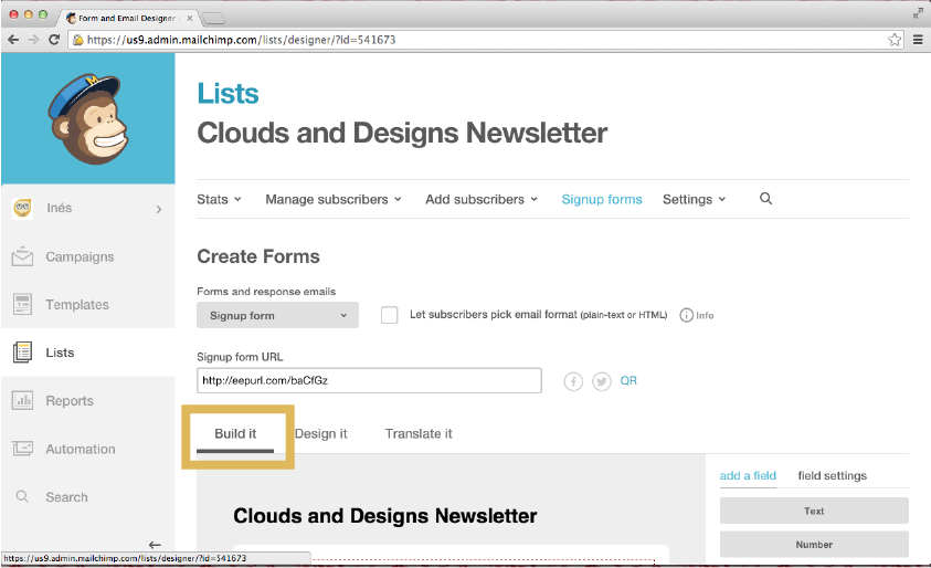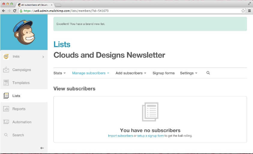 - List Name: Este es el nombre que verán los suscriptores, en mi caso he usado "Clouds and Designs Newsletter"