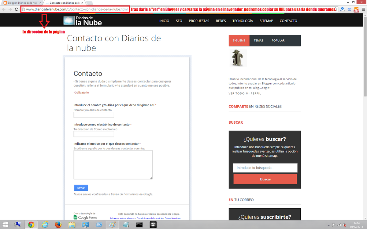 Diarios de la nube está lleno de tutoriales con distintas formas de añadir formularios a tus páginas o crear menús o enlaces para ellas: