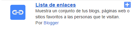 El Gadget lista de enlaces te permite añadir directamente enlaces para tu Blog en la zona donde prefieras. Puedes añadir ahí un enlace a páginas creadas por ti en tu Blog.