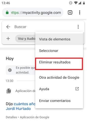 De esta forma, veremos un listado cronológico de todas las grabaciones que Google ha registrado a lo largo del tiempo. Incluso podemos reproducirlas y escuchar nuestra propia voz, pulsando sobre el botón de “Reproducir” situado al lado de cada consulta.