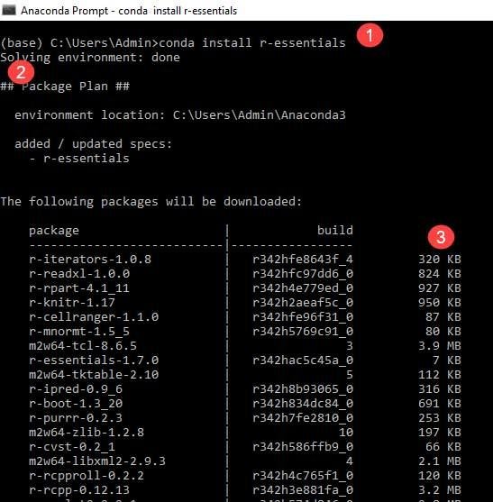 r-esenciales significa que conda instalará R y todas las librerías necesarias utilizadas por los científicos de datos.