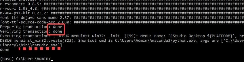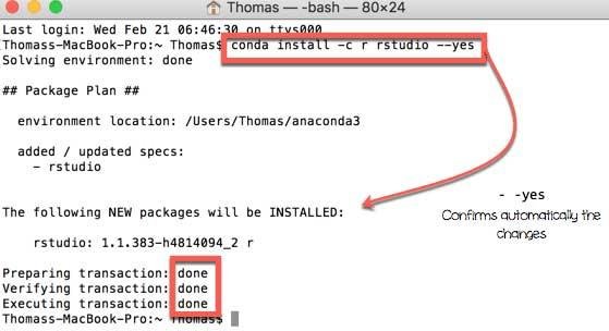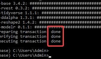 En el terminal, debería ver Ejecutar transacción: Hecho. Si es así, ha instalado con éxito R.