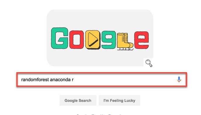 Instalar el paquete con anaconda es trivial. Vaya a su navegador favorito, escriba el nombre de la biblioteca seguido de anaconda r.