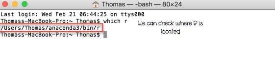 El terminal establece el directorio de trabajo predeterminado en Usuarios/NOMBRE DE USUARIO. Como puede ver en la siguiente figura, la ruta de anaconda3 y el directorio de trabajo son idénticos. En macOS, la última carpeta se muestra antes que $. Para mí, es Thomas. El terminal instalará todas las bibliotecas de este directorio de trabajo.