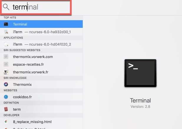 El camino más corto es usar el terminal de búsqueda y escritura de Spotlight.