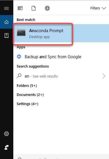 Paso 1) Anaconda utiliza el terminal para instalar librerías. El terminal es una forma rápida de instalar bibliotecas. Debemos asegurarnos de apuntar la instalación hacia el camino correcto. En nuestro caso, establecemos la ubicación de Anaconda a los Usuarios/USERNAME/. Podemos confirmar esto comprobando la carpeta anaconda3.