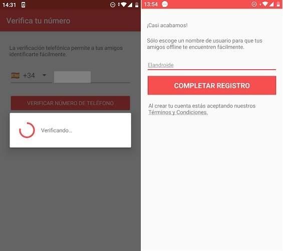Antes de comenzar a utilizar la app, tendremos que indicar nuestro número de teléfono y un alias. A continuación, recibiremos un código de verificación que debemos introducir para verificar nuestro número, y ya estaremos listos para empezar a mandar mensajes.