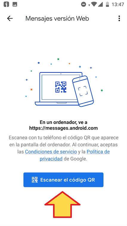Abre la página de “Mensajes versión web” desde tu navegador de sobremesa favorito (https://messages.android.com/).