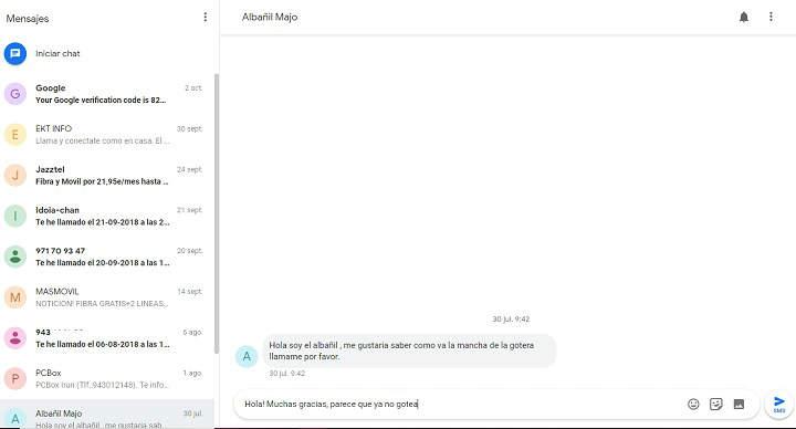 Una vez vinculada la app de mensajes podremos enviar y recibir SMS desde el ordenador con nuestro número de teléfono, tal y como lo haríamos desde el móvil.