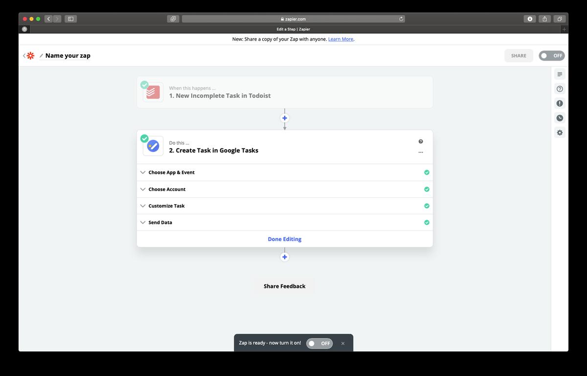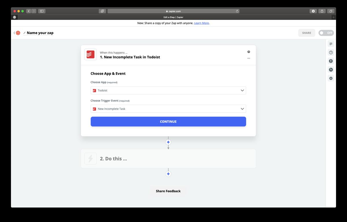 2. Como crear un zap que añada las tareas de Todoist a Google Task