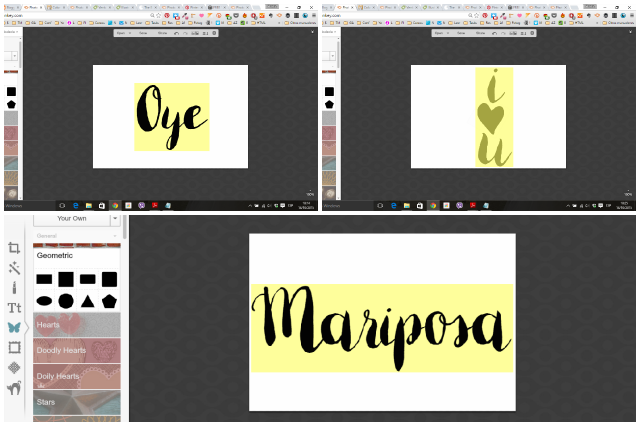 Si nuestro texto va a ser Oye necesitaremos recortar la acuarela más cuadrada que si nuestro texto va a ser Mariposa, pues mariposa será más larga (ancha). Si por ejemplo vamos a poner un texto que dice I U en tres líneas, entonces necesitaremos algo vertical.