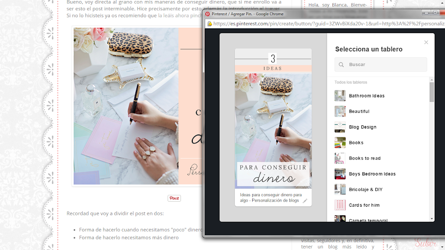 Ya tenemos en nuestro post un botón de pin it bajo una foto horizontal, que cuando la gente le dé a pinear, pineará en realidad una foto vertical, perfectamente optimizada para sacar el máximo partido a Pinterest :)