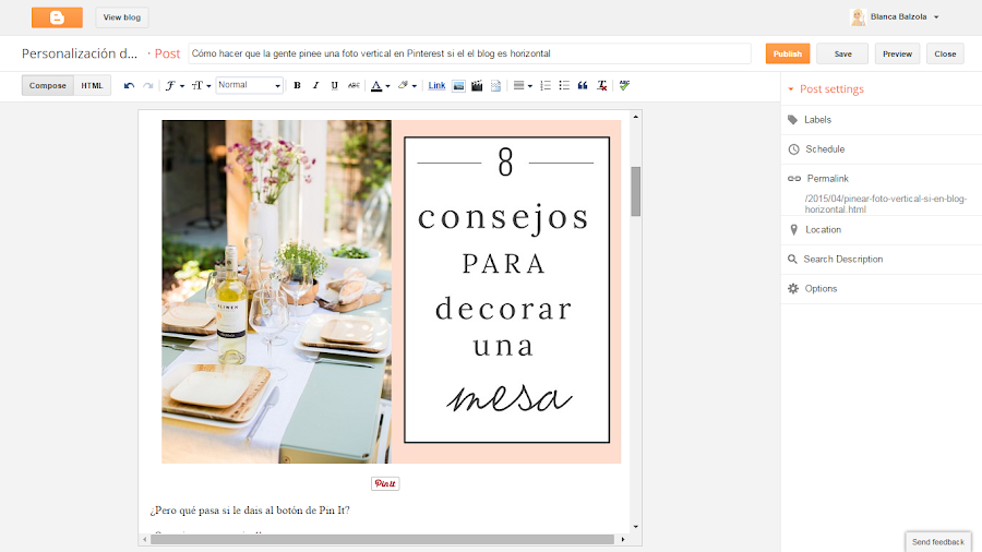 ¿Cómo podéis hacer esto vosotras si queréis tener un cartel optimizado para Pinterest pero en el blog preferís dejar el que queda mejor en el blog?