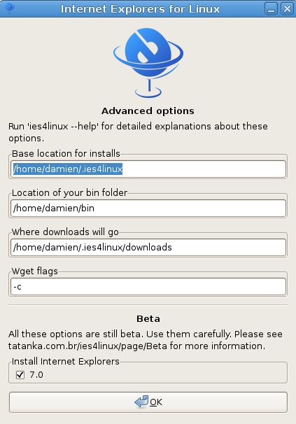 Haga clic en «Avanzado» en la ventana ies4linux . En la parte inferior, hay una caja de 7.0. Compruébelo y pulse «OK». Continúe con la instalación estándar de ies4linux.