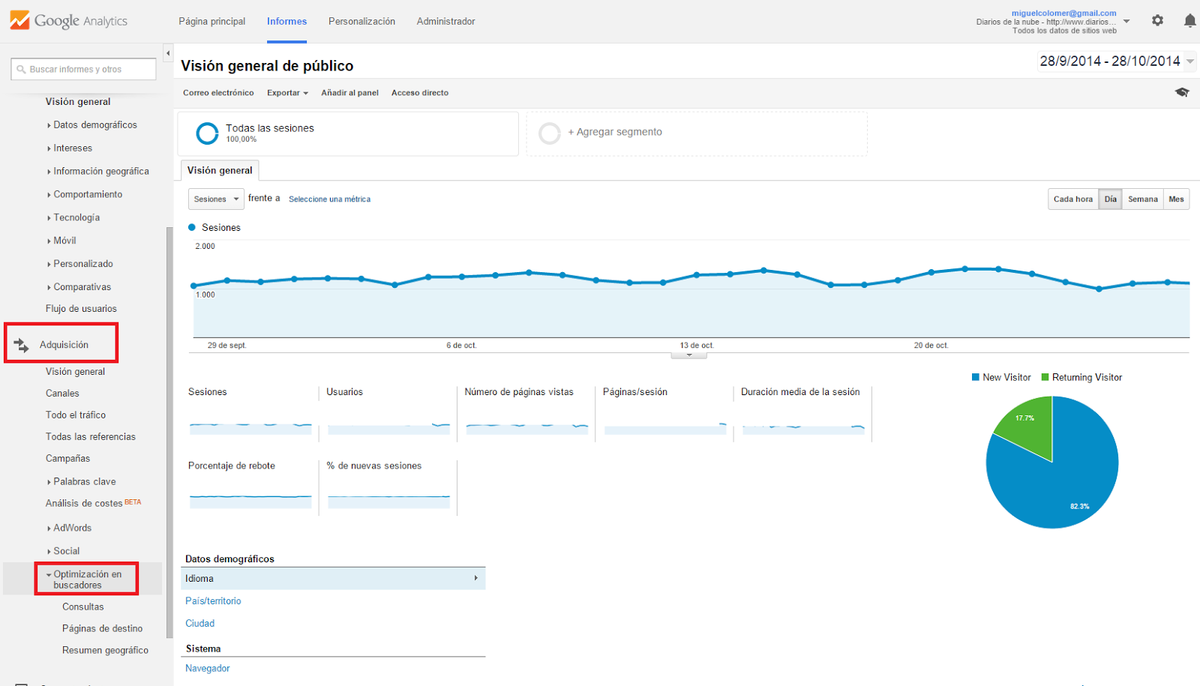 Esta vez vamos a utilizar el módulo de optimización para motores de búsqueda (SEO) de Google Analytics y descubrir la interesante información que para nuestra web puede darnos.
