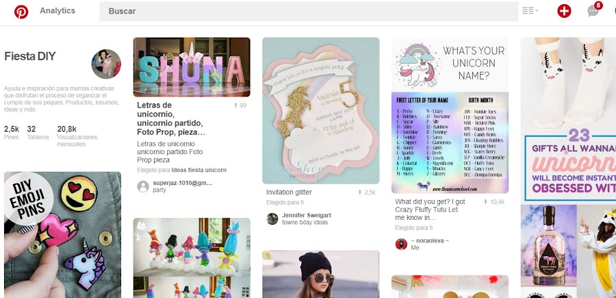 La cuenta de pinterest con tan solo 14 seguidores, tiene 20k de visualizaciones.