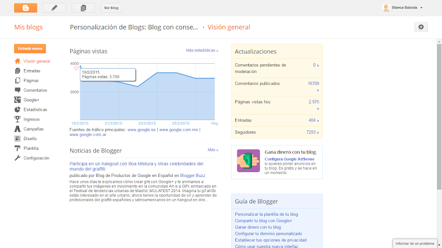 Sin embargo si pincháis en el nombre de vuestro blog, como para entrar a vuestro panel de control: