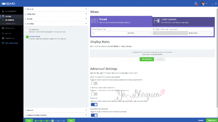 Aquí hay una parte importante que es como y cuándo quieres que se muestre la popup a los suscriptores.