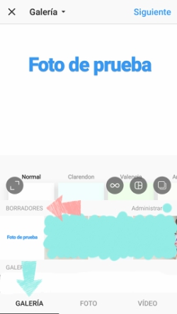 * Entramos en la aplicación, vamos como si fuésemos a publicar una foto de nuestra galería y desplazamos hacia abajo.