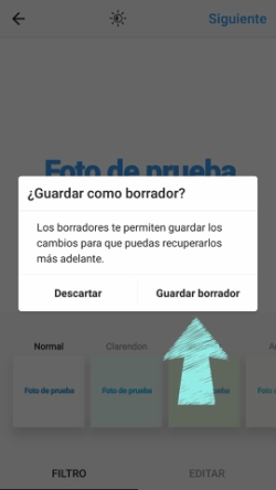 De entre todos los borradores que tenemos, seleccionamos el que queremos subir en ese momento y vamos dando a siguiente hasta que nos aparezca la opción de "compartir" y listo!!! Publicamos la foto tal y como la habíamos dejado programada. Y en el caso de querer editar algo también puedes hacerlo a medida que vayas avanzando por las opciones de filtro, texto y demás.