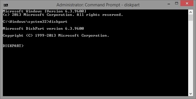Ahora necesitamos una línea de comandos con privilegios de administrador. Para hacerlo en Windows 8 y 10, pulse Windows + X o haga clic con el botón derecho del ratón en el botón Inicio. A continuación, haga clic en Símbolo del sistema (Admin).En el símbolo del sistema que aparece, escriba diskpart y pulse Intro para ejecutarlo.