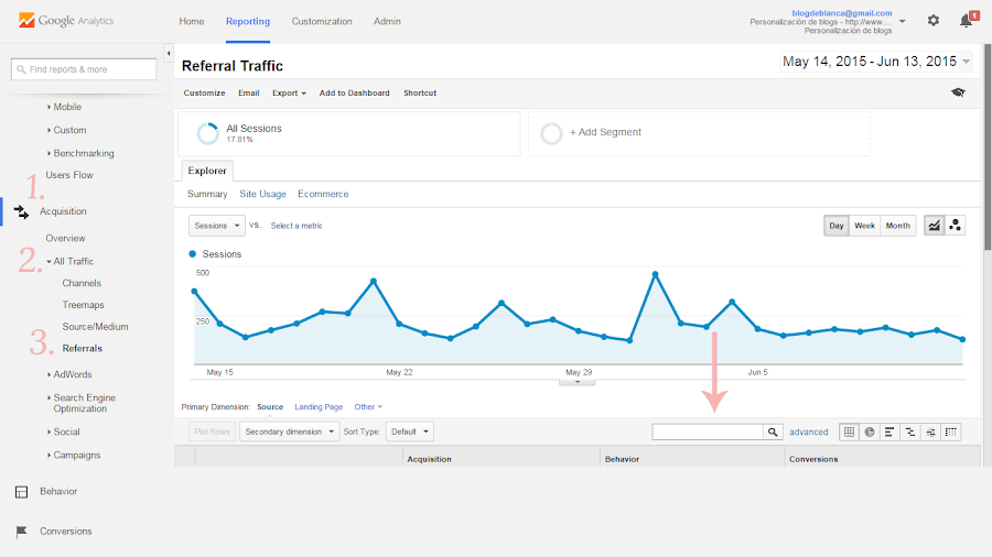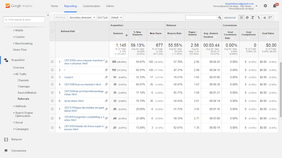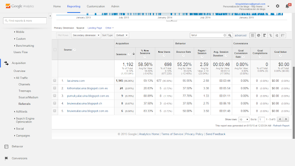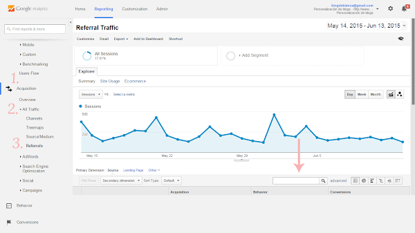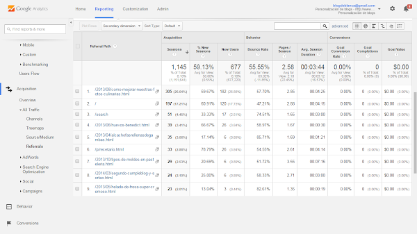 Hoy quería enseñaros cómo podéis saber cuántas visitas recibís de un determinado sitio (web, blog) en Google Analytics.
