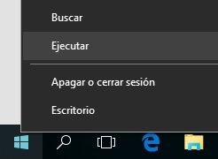 Empezamos... En Windows ingresaremos a la consola de Windows mediante comando ejecutar. El comando ejecutar en Windows 10 se encuentra dando clic derecho sobre el menú de Inicio.