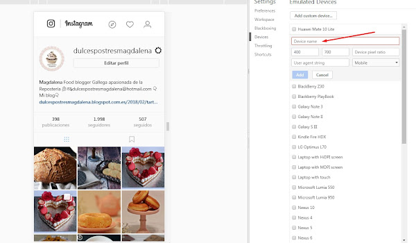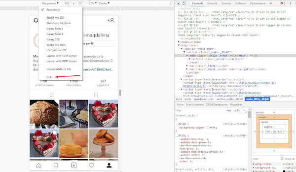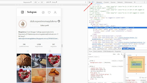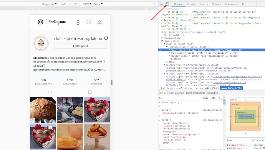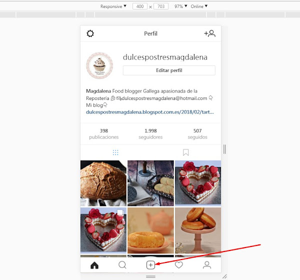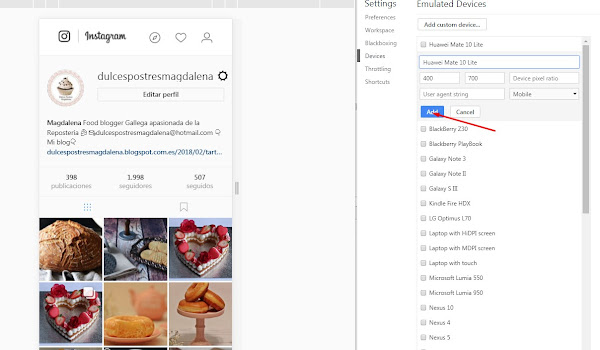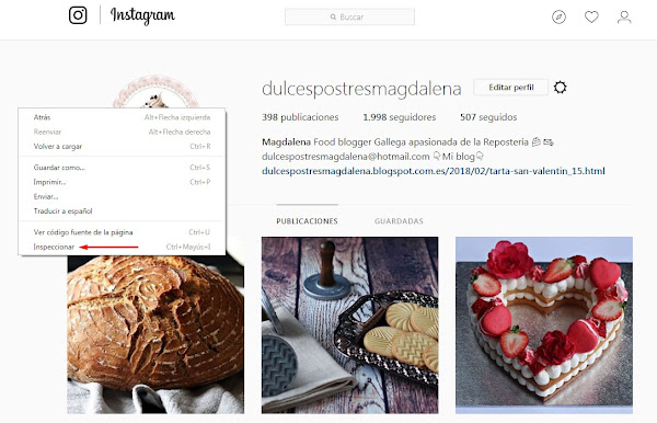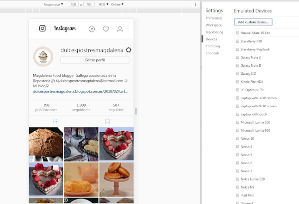 Estos pasos son para la primera vez que se haga, luego os quedará grabado y solo tendréis que abrir Instagram con el Chrome, botón derecho Inspeccionar y pinchar en actualizar. Y aparecen los botones abajo.