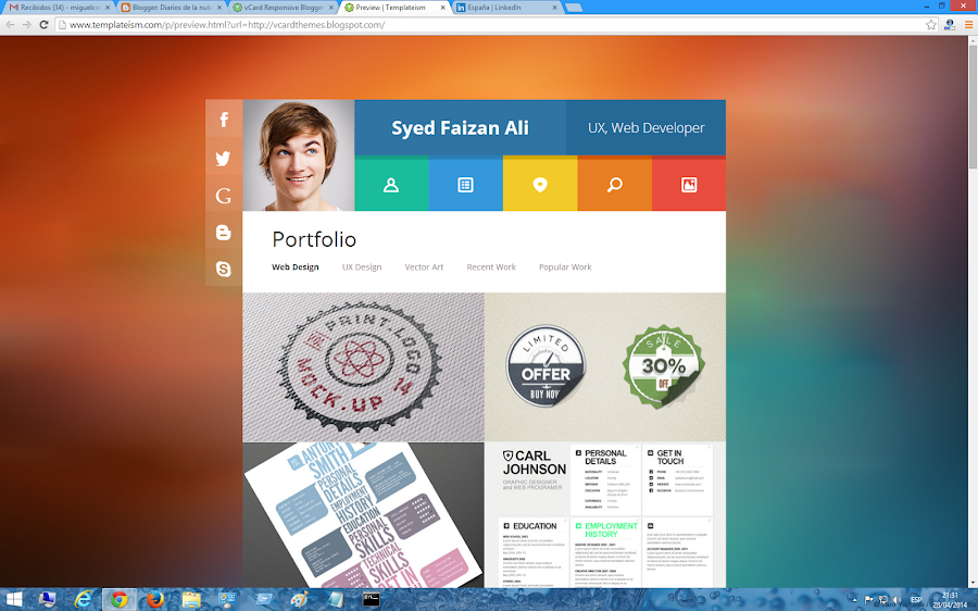 A continuación os muestro algunos ejemplo de vCard estupendos para mostrar vuestro CV al mundo. Todos se crean, editan y se trabaja con ellos exactamente igual y con la misma facilidad que un Blog de Blogger normal: