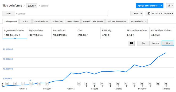 Ésto son capturas reales de la evolución de mi cuenta de Google Adsense a lo largo de los primeros años armada digital.