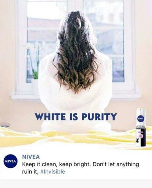 White is purity / El blanco es pureza. Esta campaña de publicidad de Nivea desde luego patinó con el mensaje. Aunque todos tenemos claro qué es lo que querían transmitir, también somos muy conscientes del doble sentido que se puede malinterpretar.
