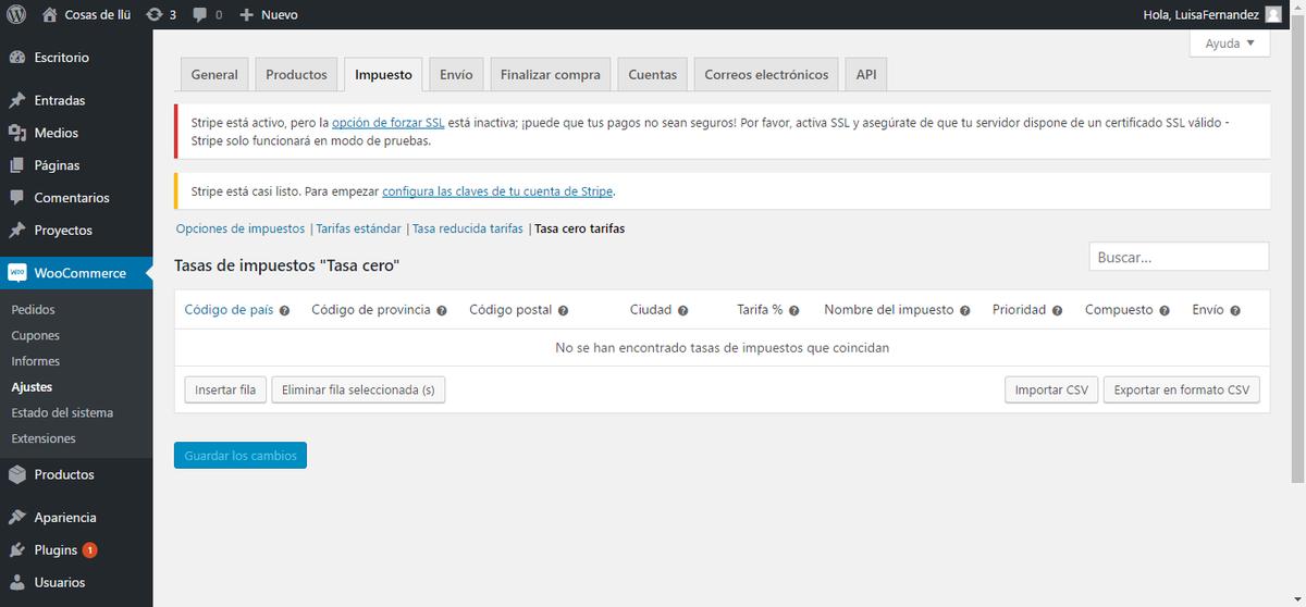 Impuestos. Esta es la última pestaña que trataremos en esta primera guía de la configuración avanzada. Como puedes ver también cuenta con varias subpestañas relacionadas con los impuestos, así que vamos a ir viendo cada una poco a poco.