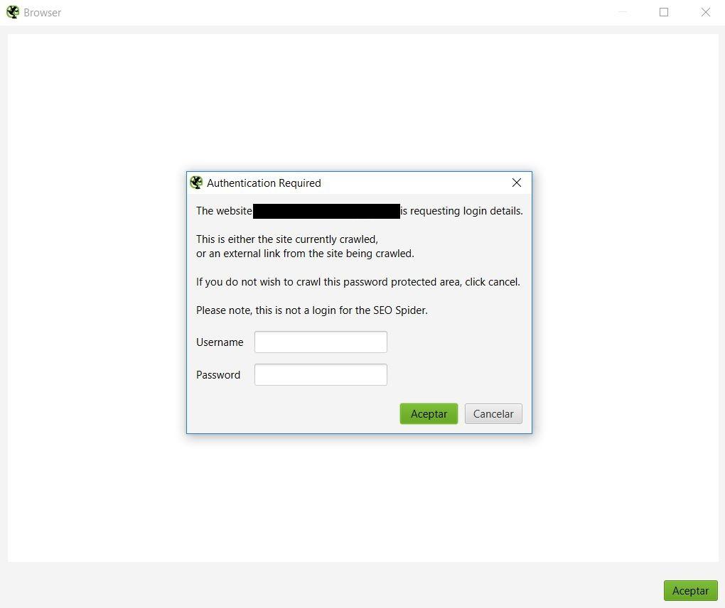 Lo normal es que los entornos de preproducción estén protegidos con usuario y contraseña para que los motores de búsqueda no puedan entrar. Para ello, Screaming tiene una opción en la que podemos incluir estos accesos y poder crawlear la web.
