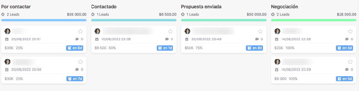A medida que un prospect avanza por las etapas de un embudo de ventas, mayor es la probabilidad de convertirlo en cliente. Los recursos de tu empresa son finitos, por lo tanto, es conveniente asignarlos de manera prioritaria a quienes están a punto de tomar la decisión de compra.noCRM.io te permite de manera visual identificar en qué etapa del proceso se encuentra cada uno de tus prospectos.