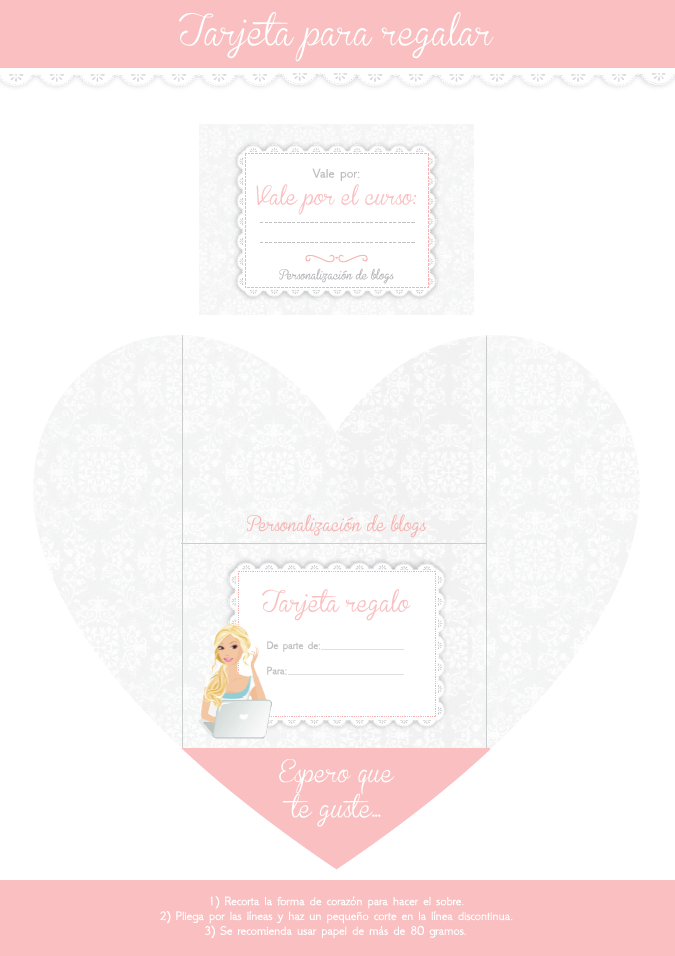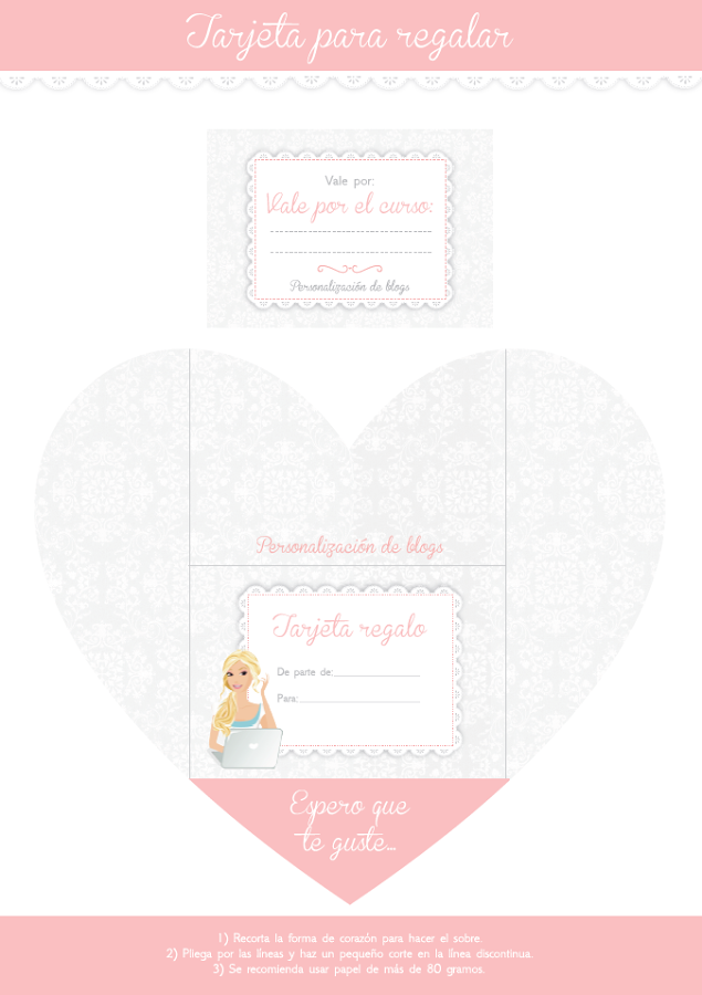 Hay dos modelos, uno para quien quiere regalar un diseño de blog y otra para quien quiera regalar un curso. En ese caso simplemente tenéis que rellenar el nombre del curso vosotras.